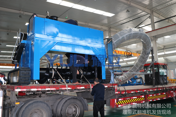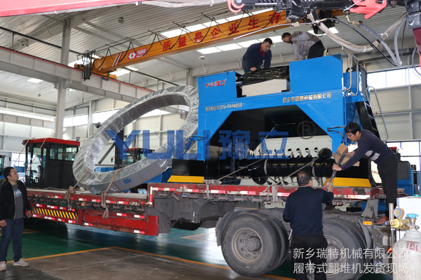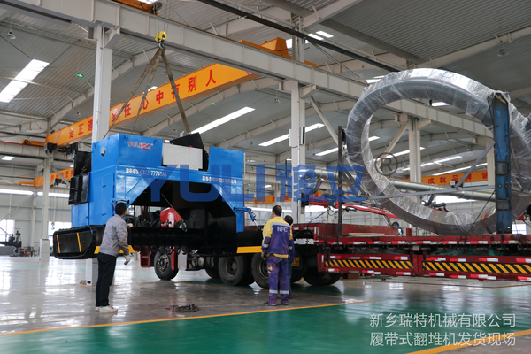 瑞特機械發(fā)往廣西梧州的履帶式翻堆機裝車現場